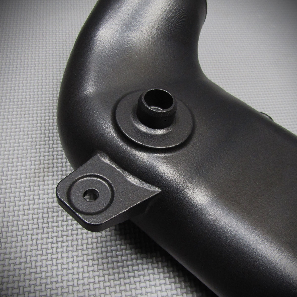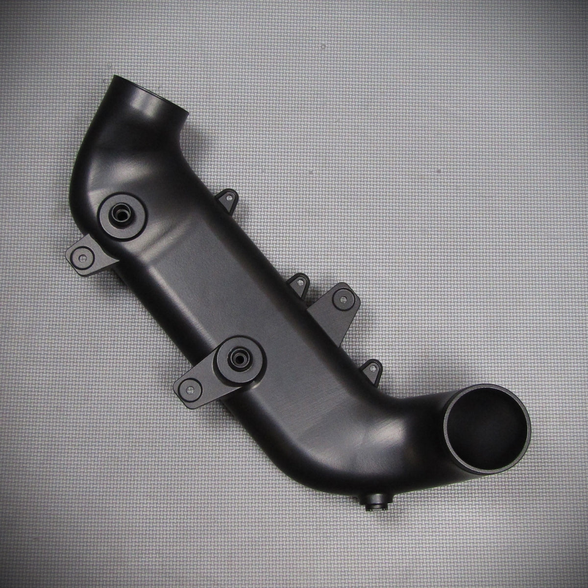 Das Saugrohr wird im SLS Verfahren aus PA12 gesintert und schwarz lackiert. Kritische Stellen wurden beim Design bereits verbessert und verstärkt. Bauteile dieser Art sind in diesem Anwendungsbereich sehr wärmestabil und robust. Vergleichbare Ansaugrohre konnten wir bereits erfolgreich unter Ladedruck von bis zu 2bar (Relativdruck!) testen.